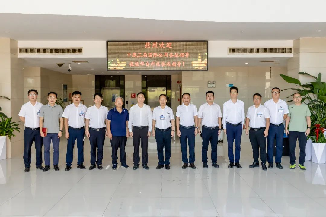 中建三局国际公司副总经理秦国民,党建工作部主任陈焱明,三局中南公司党委书记、总经理温杰,三局中南公司副总经理史奇鑫,三局国际公司市场部陈彬陪同考察。华自科技副总裁杨镠、湖南能创科技有限责任公司(华自集团参股子公司)总经理劳文、华自科技国际公司副总经理高中明等参与接待。作为宾主双方的老朋友,湖南建投集团程长明总参与接待交流。